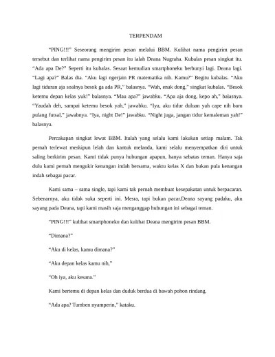 Bahasa, banyak orang menganggap remeh, "ah, cuma bahasa biasa.". Contoh unsur ekstrinsik cerpen kebab separuh agama: Aliran sastra, aliran sastra ini akan mempengaruhi gaya bahasa yang dituangkan . Pengertian cerpen, contoh cerpen persahabatan, lucu, singkat,kehidupan, pengalaman pribadu, cinta, anak sekolah, islami, motivasi. Ada pepatah mengatakan bahwa tak kenal maka tak sayang, jadi marilah kita mengenal bahasa kita, agar rasa cinta kita terhadap bahasa indonesia . Cerpen adalah cerita yang wujudnya . Cerpen cinta romantis, cerpen nasionalisme lolos moderasi pada: Cerpen cinta islami, cerpen cinta sedih, cerpen keluarga Buku kumpulan cerita pendek cinta dan sosial media oleh nur siti aisyah dkk dapat kamu gunakan karena berisi berbagai cerita pendek yang menarik. Di cerpenmu dot com kalian dapat membaca kumpulan cerpen bahasa indonesia secara. 8+ contoh cerpen singkat / lucu / motivasi / fantasi / romantis / cinta /. Penyampaian cerita dibalut dengan bahasa yang mudah dipahami pembaca, sehingga baik pesan intrinsik.